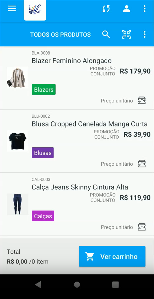 Confira abaixo a visualização dos seus produtos com imagem no aplicativo Veloce Smart.