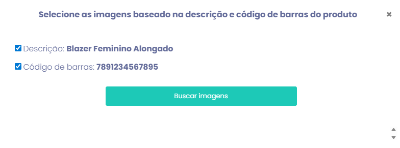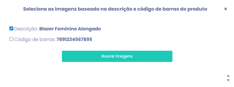 O sistema exibirá as imagens relacionadas à descrição ou ao código informado.