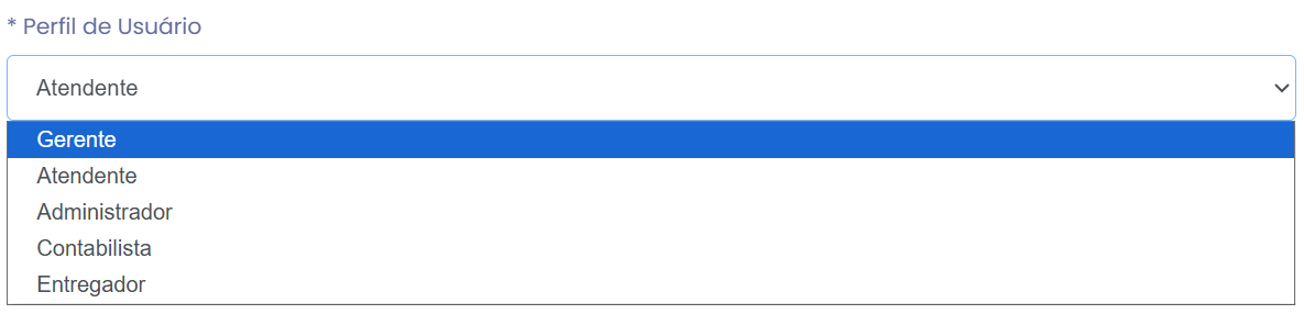 Atendente: Tem acesso limitado a recursos como relatórios, cadastros e configurações, podendo apenas visualizar as informações disponíveis no Painel.