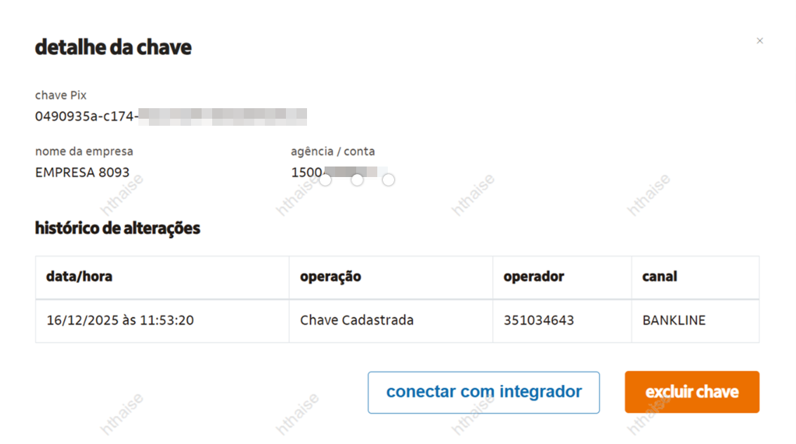 3. Nos detalhes da chave, clique em Conectar com Integrador;