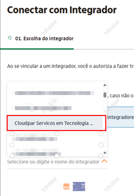 4. Selecione a opção Cloudpar Serviços em Tecnologia | Veloce Tech como integrador.