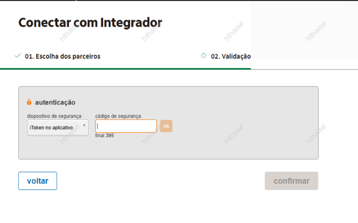 6. Realize a autenticação solicitada pelo Itaú e confirme a integração.