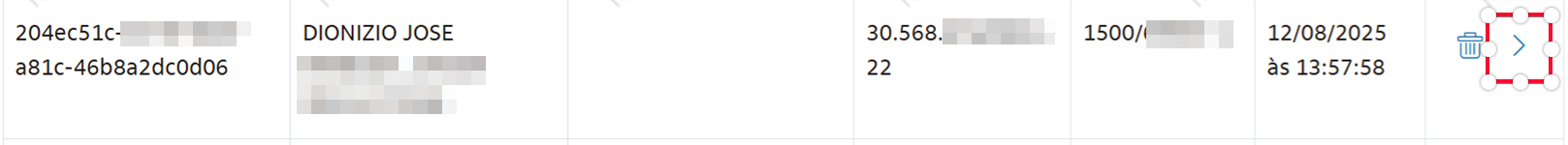 2. Localize a chave PIX que será integrada e clique na seta ao lado do ícone de lixeira da chave desejada.