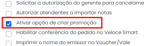 3. Ative a opção “Ativar opção de criar promoção”