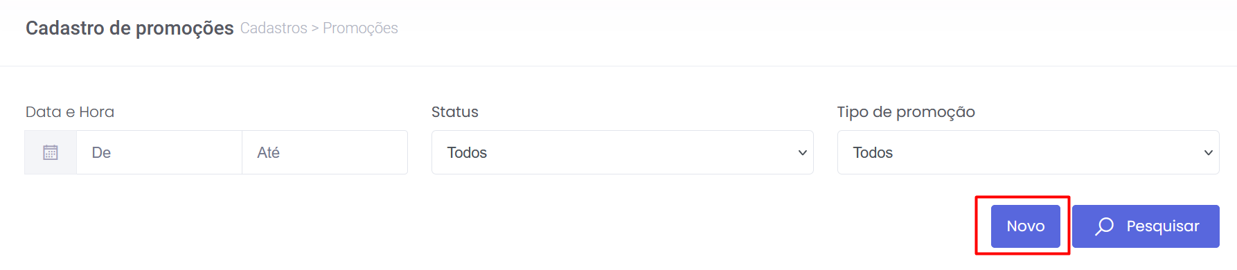 2. Clique no botão Novo, localizado na parte superior da tela