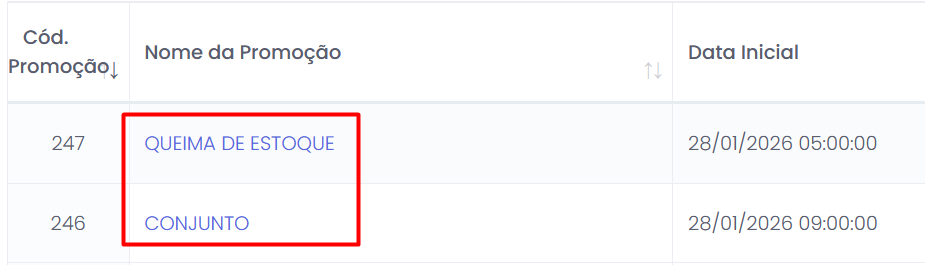 • Nome da promoção (ex: Semana do Desconto, Queima de Estoque, Oferta Relâmpago)