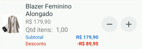 • Basta adicionar o produto ao carrinho e o desconto será aplicado automaticamente