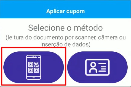 Já nas promoções via QRCode, será necessário acessar a câmera para realizar a leitura do QRCode ou informar o código promocional manualmente.