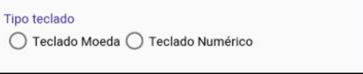 Para alterar entre as duas opções fornecidas “Teclado Moeda” e “Teclado Numérico”, será necessário acessar o menu Configurações -> Selecionar o Tipo teclado.