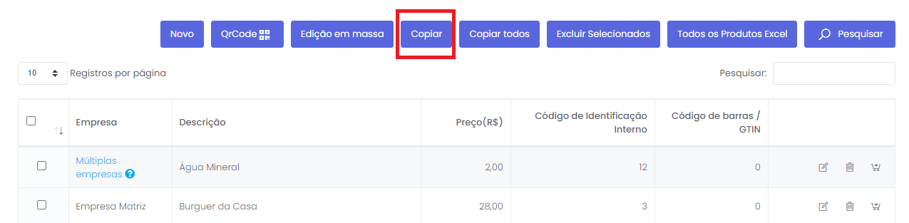 A Veloce oferece uma ferramenta que facilita e torna mais rápida a administração dos produtos da sua empresa. A funcionalidade Copiar produtos serve para que você possa copiar e colar qualquer número de produtos desejados de uma empresa para a outra.