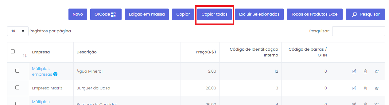 3. Copiar todos os produtos listados: Ao invés de selecionar todos os produtos, você pode simplesmente clicar no botão “Copiar todos”, como na imagem: