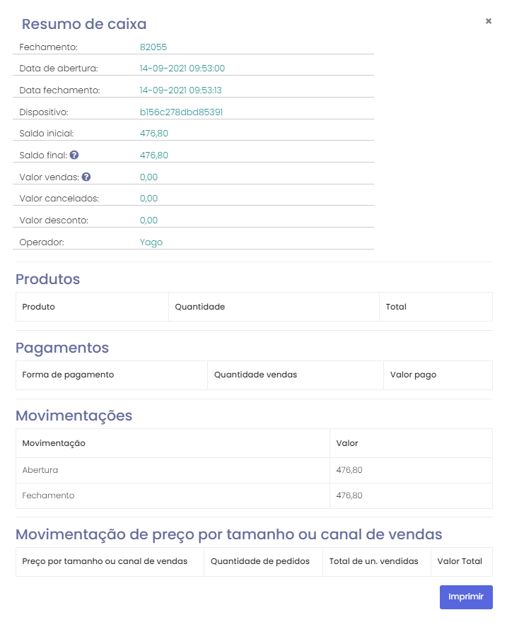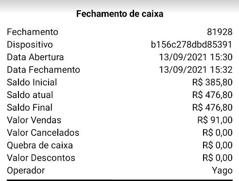 Dispositivo: código do dispositivo onde o caixa foi fechado.