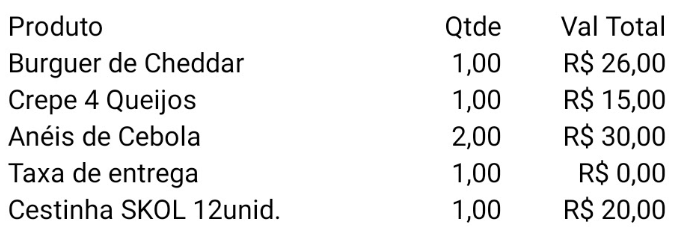 Nesta seção, você tem a descrição de todos os produtos que foram vendidos durante a operação, com as devidas quantidades e valores totais.