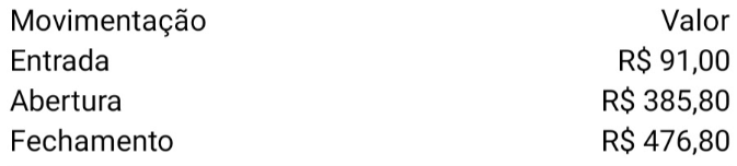 Saldo inicial: Quantia de dinheiro que constava no caixa no momento da abertura.