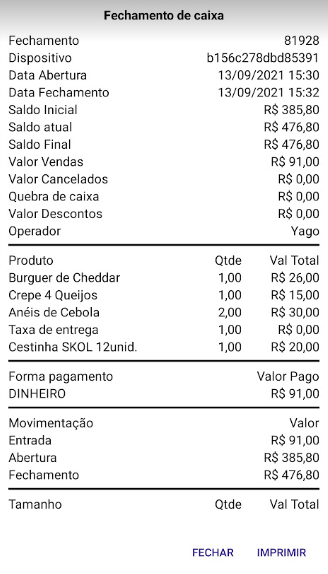 Este é o relatório que você tem acesso ao fechar o seu caixa.