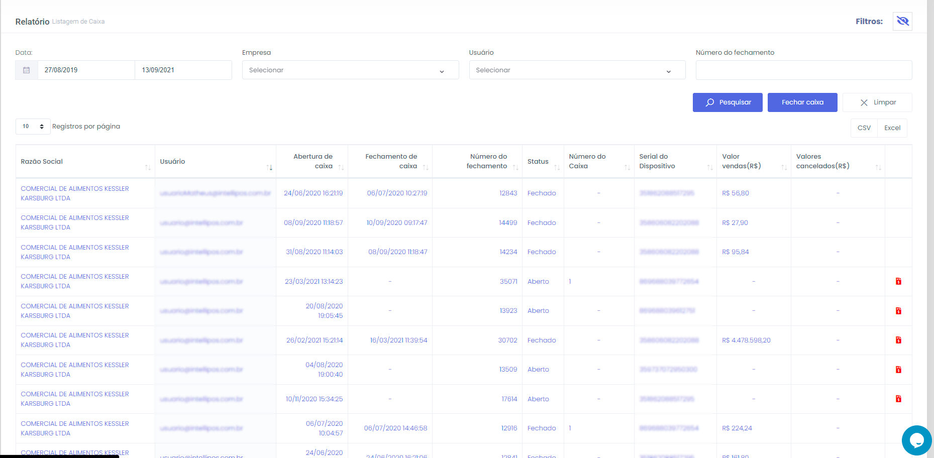 Você terá acesso à seguinte listagem, clique no caixa que você deseja consultar e você terá acesso às informações. Não esqueça, utilize os filtros de busca para facilitar o processo.