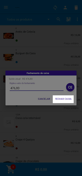 Saldo atual: Quantia de dinheiro que consta no caixa após o fechamento ou quando você consulta o resumo de caixa antes do fechamento.