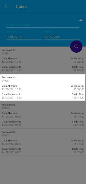 Ou então acessando os Fechamentos de Caixa e clicando sobre o fechamento desejado: