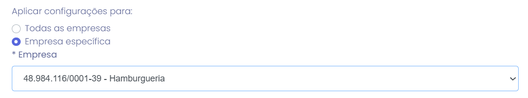 3. Se tiver mais de uma empresa cadastrada no Painel Veloce, pode aplicar as alterações para todas as empresas simultaneamente, ou individualmente.