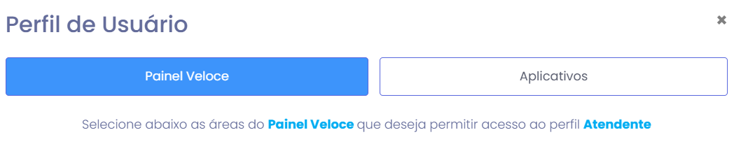 2. Na nova tela, defina as permissões para o Painel Veloce e Aplicativos: