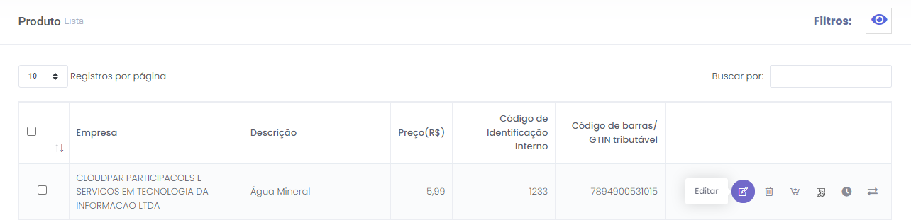Localize o produto cujo preço de custo você deseja editar e clique em .