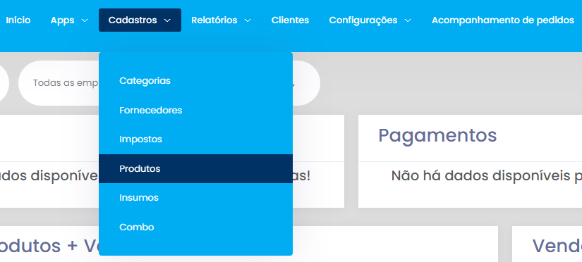 Primeiramente, acesse a seção “Produtos” a partir do menu superior.