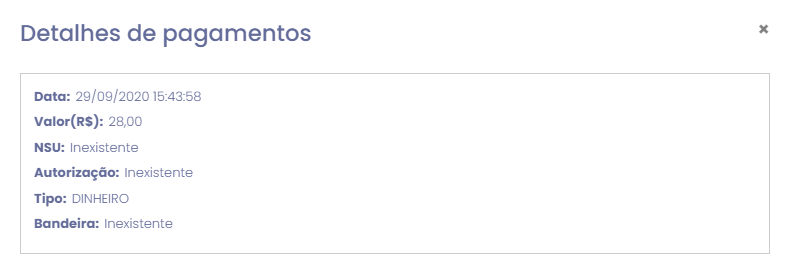 Este botão disponibiliza as informações referentes a pagamento, conforme imagem abaixo:
