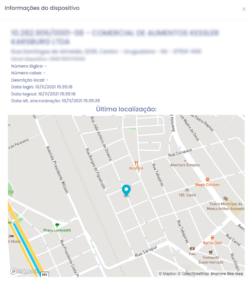 Este botão disponibiliza as informações referentes ao dispositivo onde foi feita a transação.