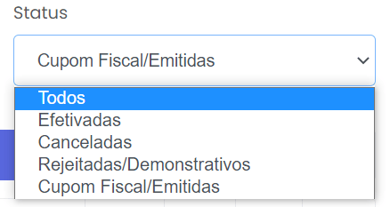 - Status: Filtre as vendas pelos seguintes critérios.