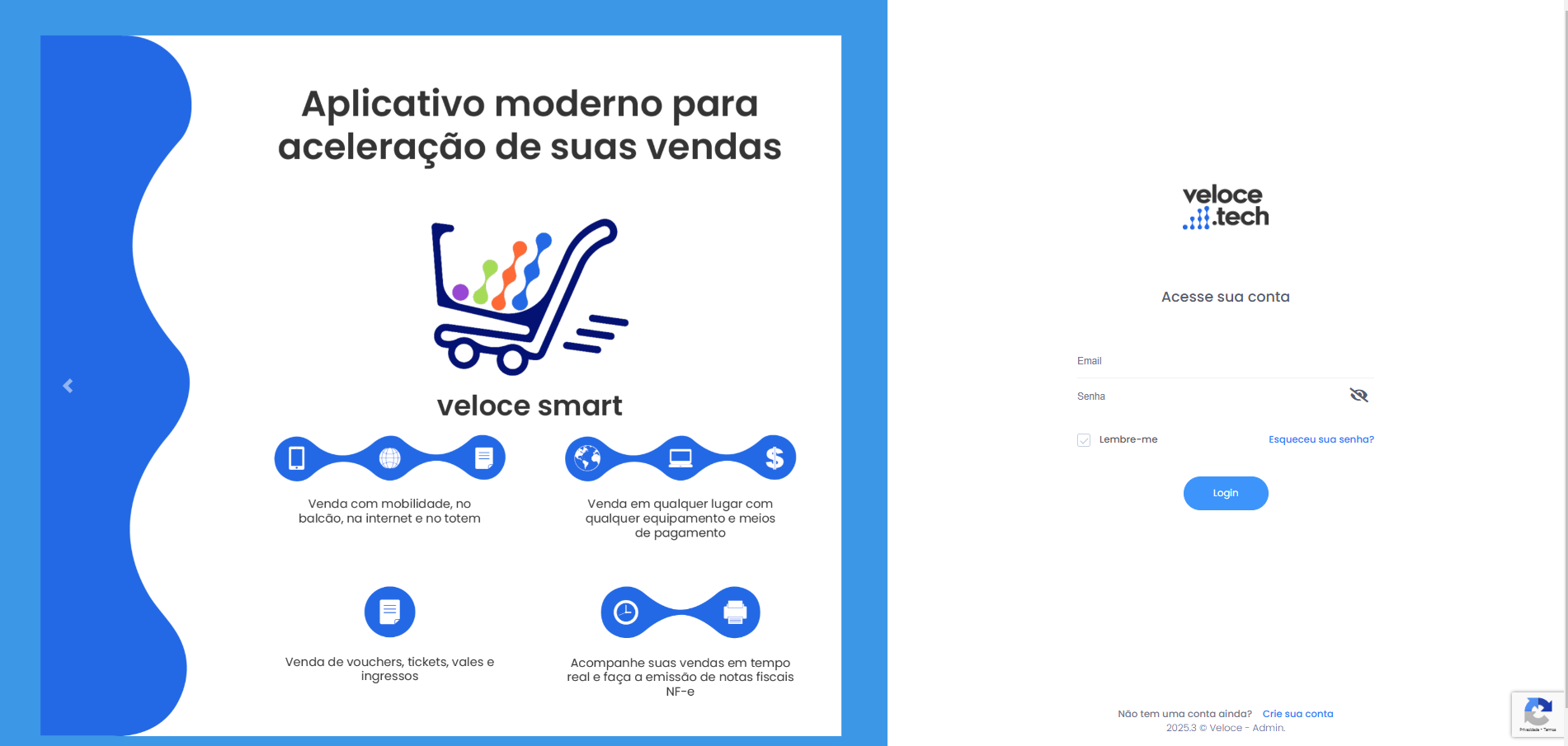 1. Para começar, acesse sua conta no painel.velocepos.com.br com login e senha cadastrados: