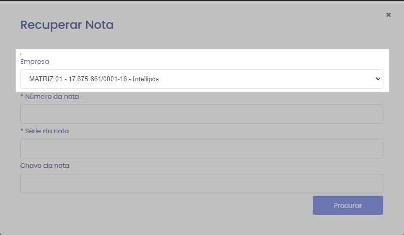 4. No primeiro menu, você irá selecionar de qual empresa você deseja recuperar a nota.