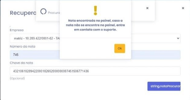 3. Ao clicar no botão “Recuperar Nota”, você verá a tela abaixo: